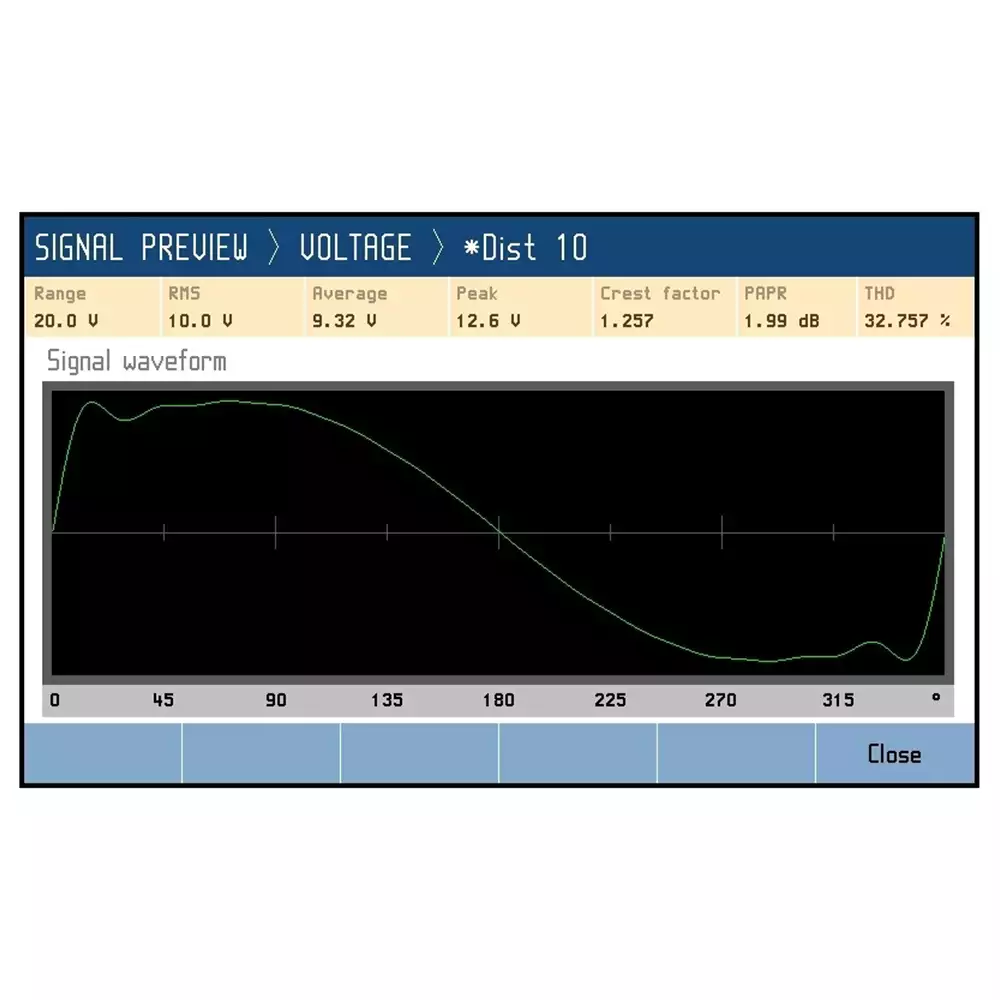 - Установленные гармонические и негармонические формы сигналов позволяют тестировать чувствительность приборов к искажённым сигналам с различным коэффициентом амплитуды.
