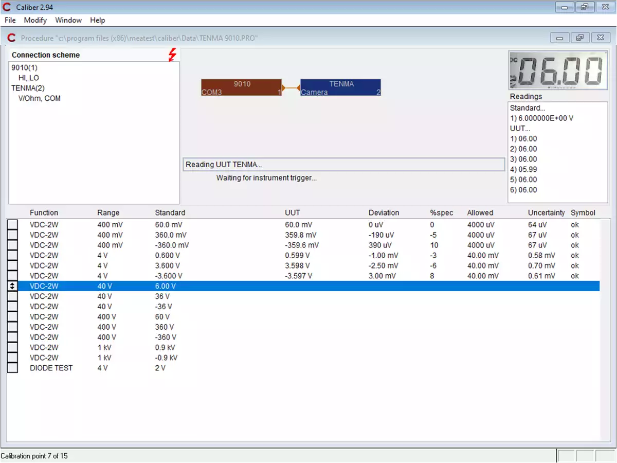 Два основных элемента Caliber – это Процедуры и Карты приборов. Процедуры представляют собой список калибровочных точек в порядке выполнения с указанием схем измерительной системы, источников неопределённости и другой связанной информации. Их можно запускать, управлять ими и настраивать в модуле Procedure или создавать с нуля с помощью мастера Procedure Wizard. Полная версия Caliber позволяет экспортировать сертификаты калибровки, включая детальные записи каждого шага, отклонения и неопределённости в соответствии с EA 4/02.