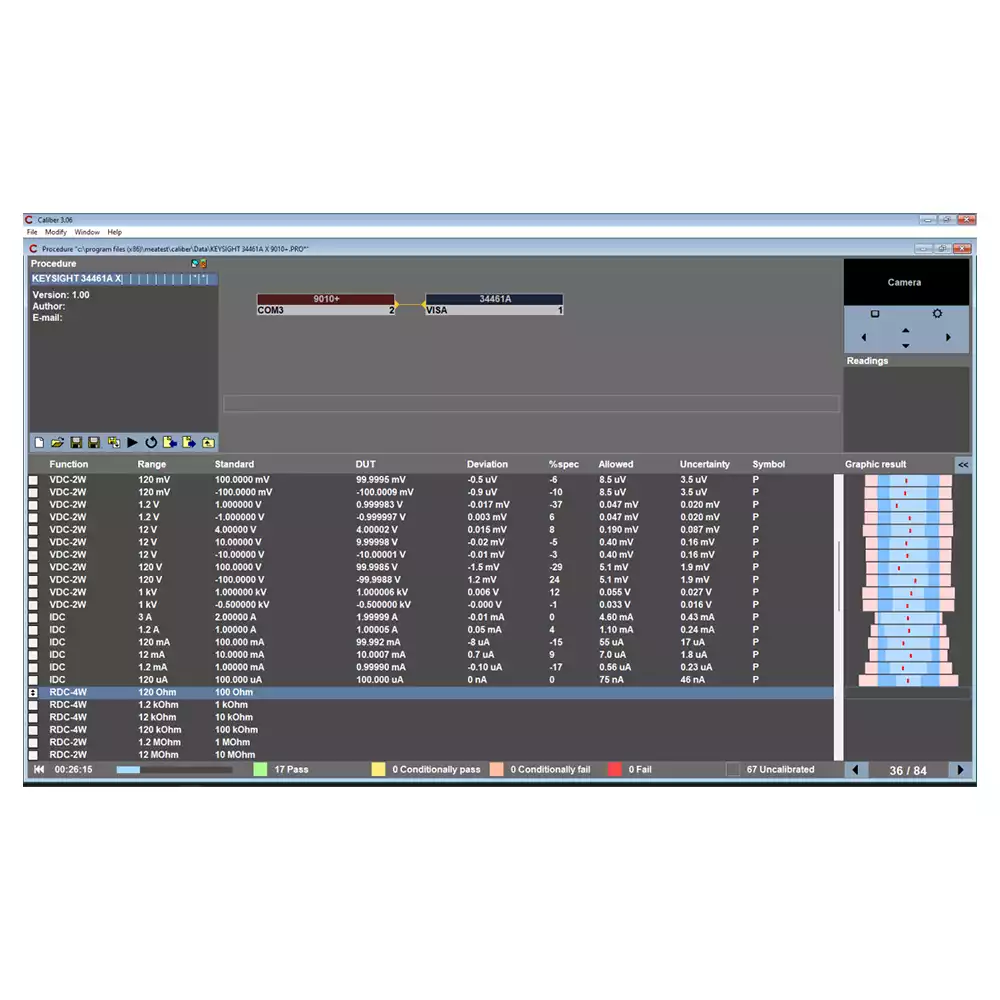 Caliber может автоматизировать даже калибровку портативных мультиметров, не имеющих возможности дистанционного управления. Модуль CamOCR использует камеру для считывания сегментных цифровых дисплеев и преобразует изображения в числовые данные, используемые Caliber. Это делает процесс калибровки быстрее и менее подверженным влиянию человеческого фактора.