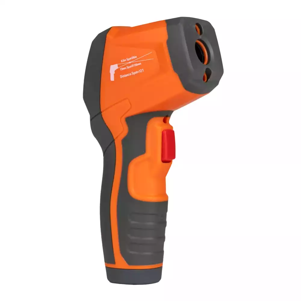 Инфракрасные термометры используются для определения температуры поверхности исследуемого объекта. Оптическая система прибора фиксирует излучение, которое испускается, отражается и проходит через объект, затем собирает и фокусирует его на детекторе. Электронная система преобразует оптические данные в значение температуры. Для повышения точности измерений и облегчения наведения устройство оснащено лазерным указателем.