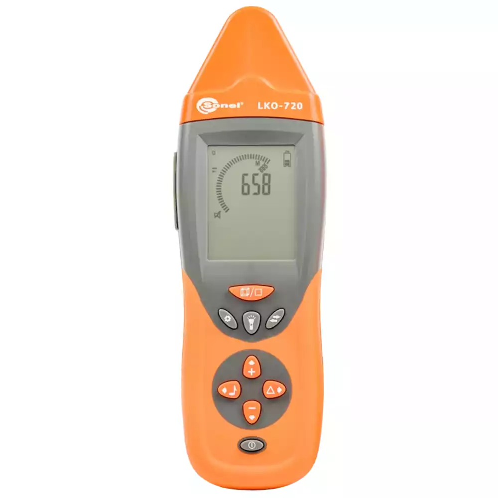 LKO-720 — это высокоточный приёмник, предназначенный для обнаружения скрытой электропроводки, кабелей и мест повреждений в различных конструкциях. Устройство поддерживает одновременную работу с несколькими передатчиками, обладает функцией 3D-направления тока, подсветкой экрана для работы в темноте и может получать информацию от передатчика LKN-720 в реальном времени.
