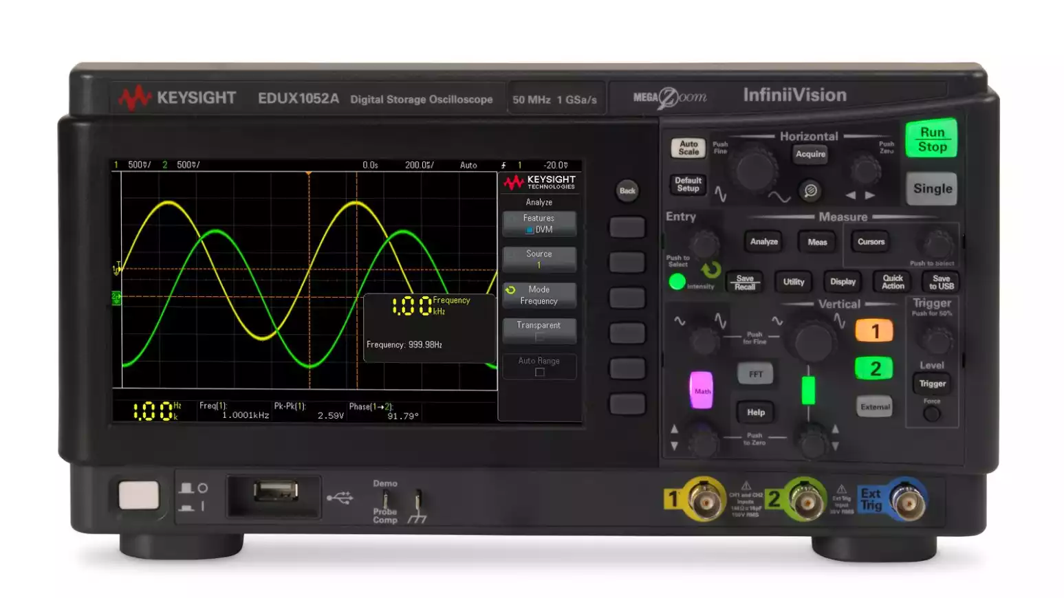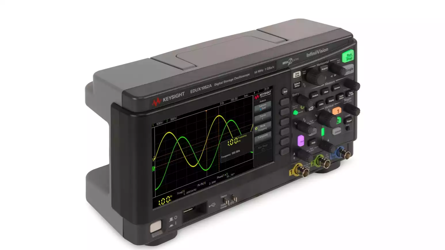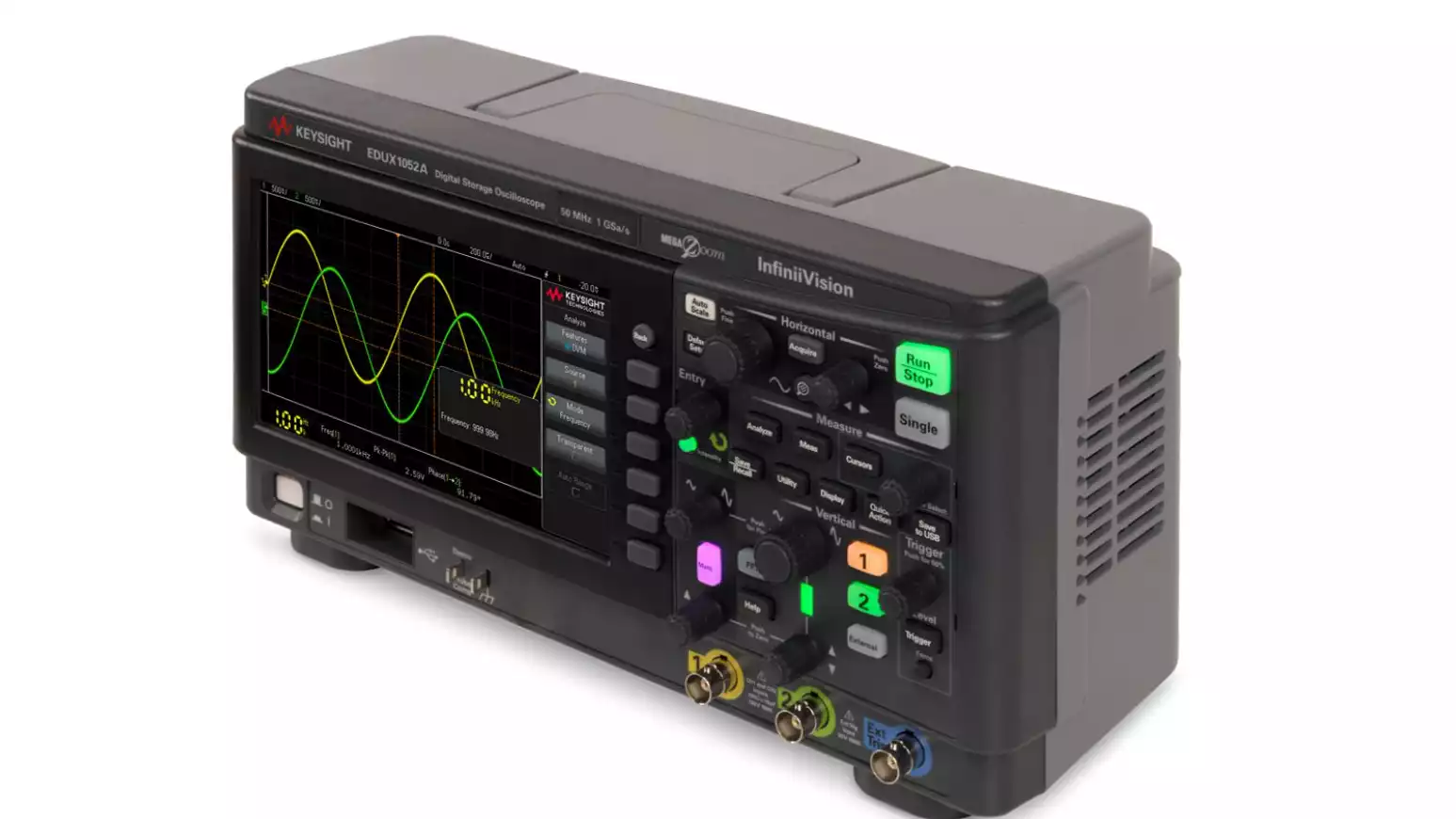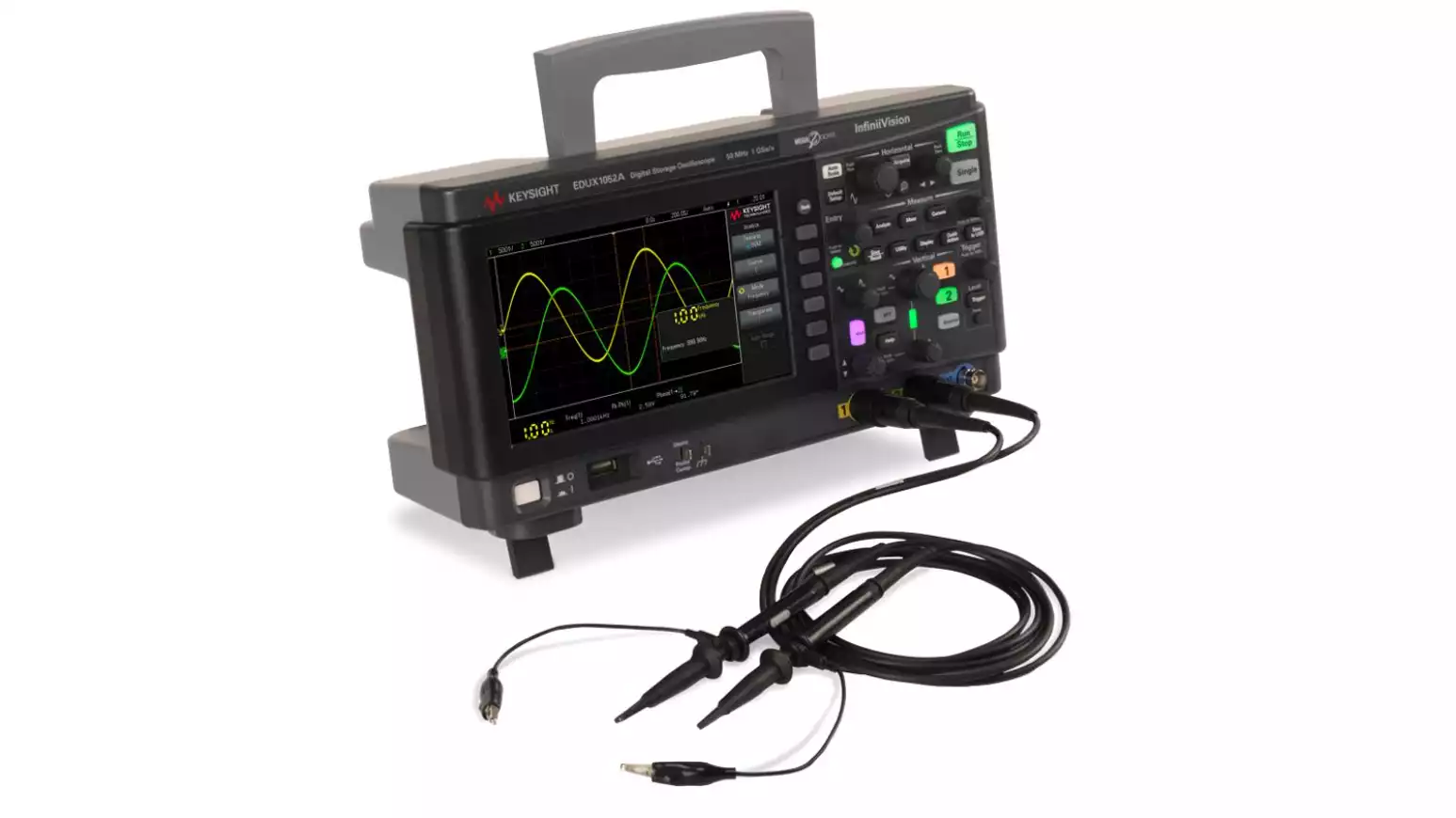 Осциллограф EDUX1052A идеально подходит для студентов, преподавателей и начинающих инженеров благодаря своей надежности, компактности и доступной цене, сохраняя при этом профессиональное качество измерений.