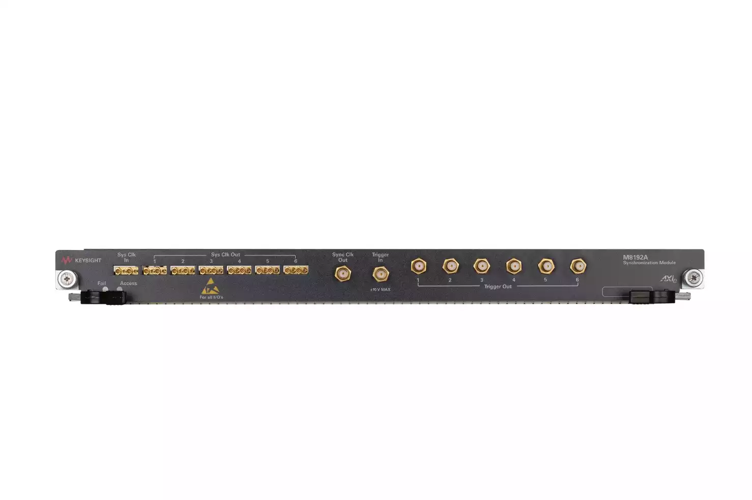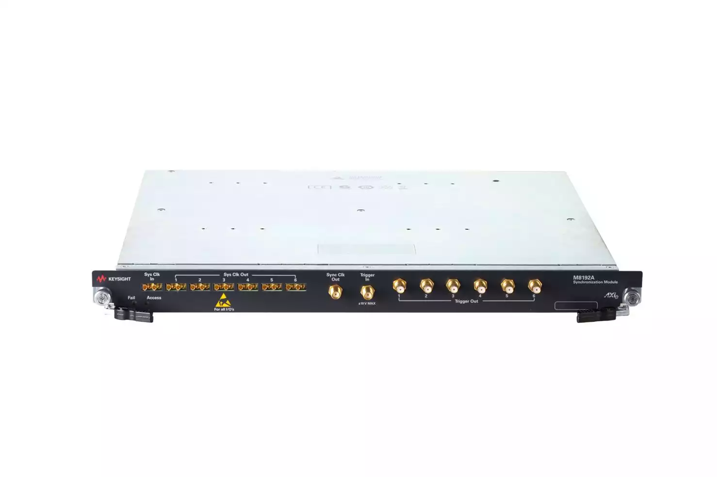 Модуль синхронизации M8192A компании Keysight совместно с двумя–шестью генераторами сигналов произвольной формы M8190A предназначен для создания многоканальной системы полностью синхронной фазокогерентной генерации. Такая система может включать до 12 аналоговых каналов и до 24 выходов маркеров.