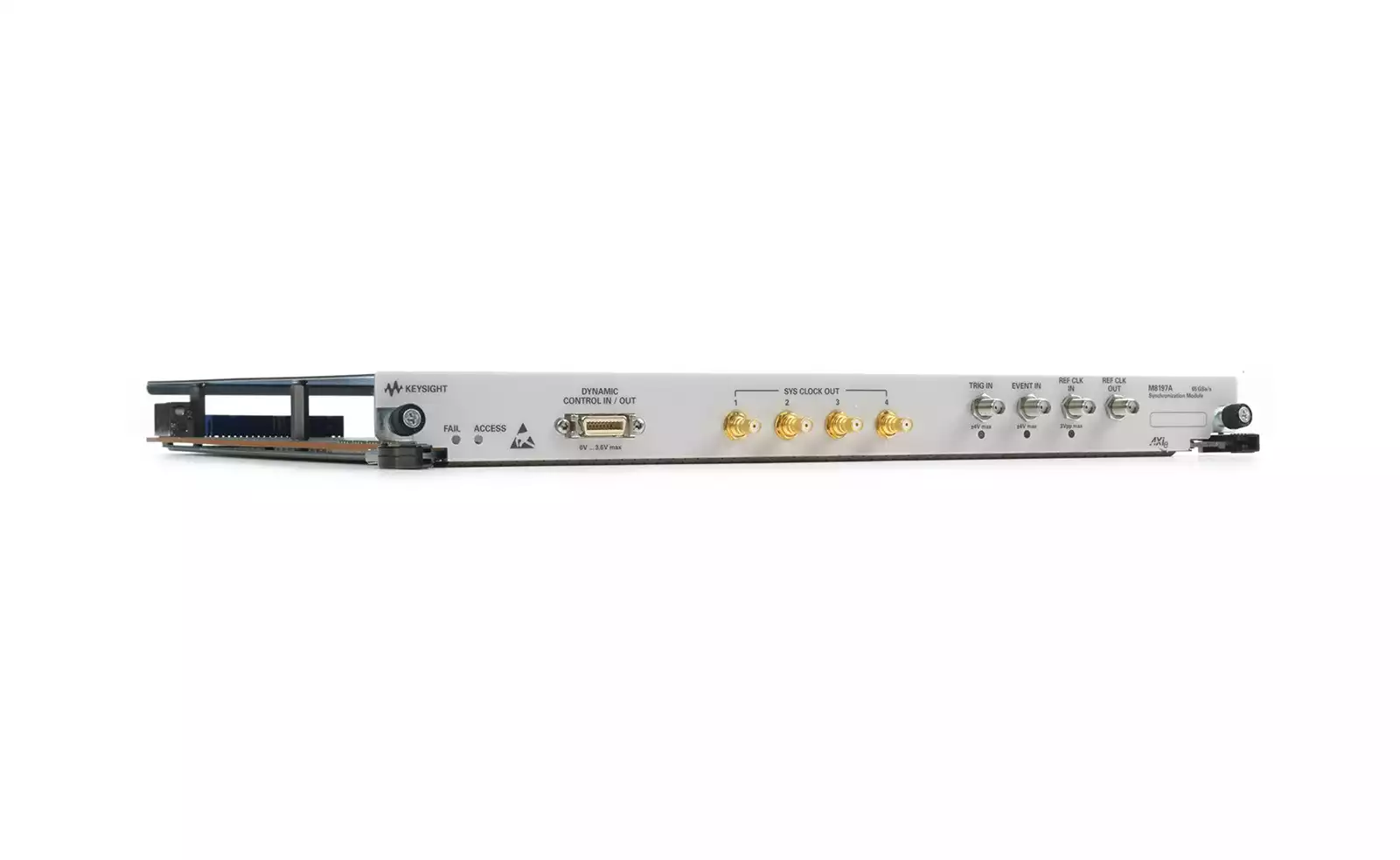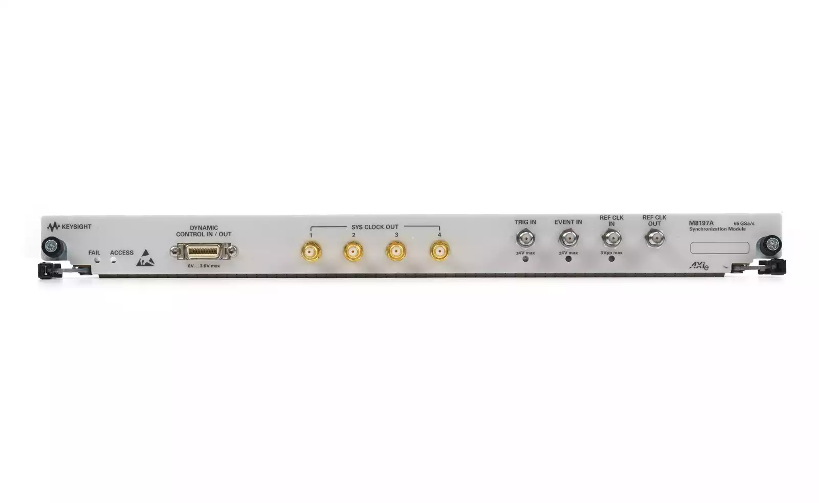 Модуль многоканальной синхронизации M8197A компании Keysight совместно с одним–четырьмя модулями генераторов сигналов произвольной формы M8195A используется для создания многоканальной системы генерации полностью синхронных фазокогерентных сигналов, содержащей до 16 аналоговых каналов в одном 5-слотовом шасси AXIe.