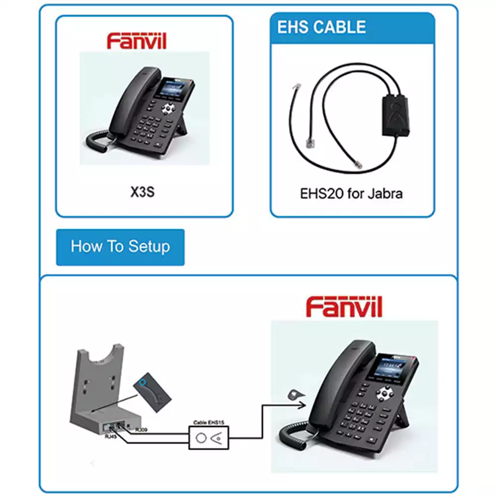 - Поддержка подключения беспроводных гарнитур Jabra EHS (при использовании с телефонами Fanvil, поддерживающими EHS).