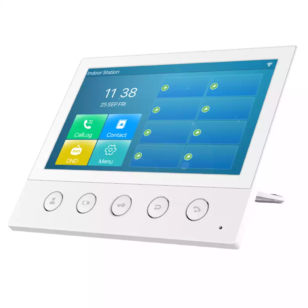 Fanvil i53W - это внутренняя SIP-станция с 7 -дюймовым сенсорным цветным экраном и 5 функциональными кнопками, которые могут применяться в различных ситуациях внутри помещений. Работая с домофоном и дверным звонком на входе, Fanvil i53W может также обеспечить удаленный контроль доступа для жилых помещений.