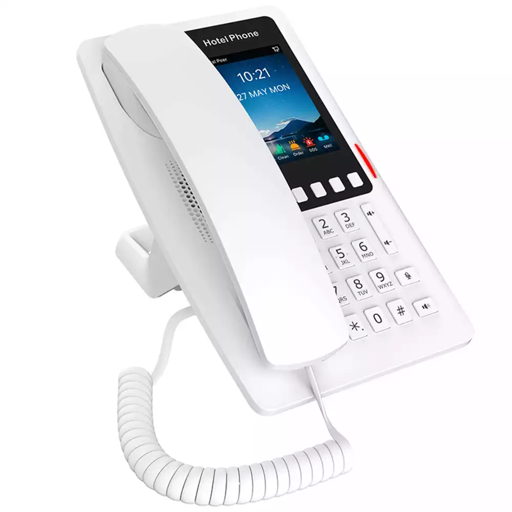 Fanvil H6W — это недорогой Wi-Fi IP-телефон с множеством функций и элегантным внешним видом. Он оснащён пятью программируемыми клавишами для заказа услуг, что делает его идеальным решением для различных сценариев использования в отелях. Модель оснащена встроенным двухдиапазонным модулем Wi-Fi 2,4 ГГц и 5 ГГц (Wi-Fi 6), поддерживает HD-звук, Ethernet 10/100 Мбит/с и питание по PoE, обеспечивая пользователю высокое качество связи и снижая затраты на установку. Этот телефон подходит не только для гостиниц, но и для других коммерческих объектов, таких как торговые центры, больницы и супермаркеты.